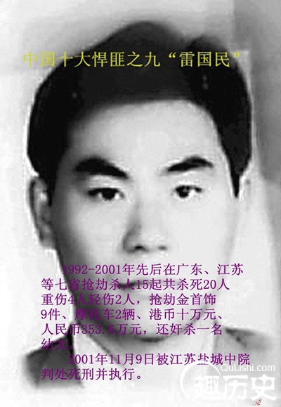 1996年,用铁棍砸死一个武警,抢走步枪一支。