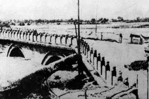 卢沟桥位于北京城西南约15公里的永定河上,是北京通往各地的咽喉要道。从1937年6月起,日本侵略军几乎每天都在卢沟桥附近进行挑衅性的军事演习。7月7日,日军借口一名士兵失踪,要求进入桥头的宛平县城搜查,遭到中国守军的拒绝。当晚8点钟,日寇突然向卢沟桥发动进攻,中国守军忍无可忍,奋起自卫,中国人民反对日本帝国主义侵略的抗日战争,从此开始了。